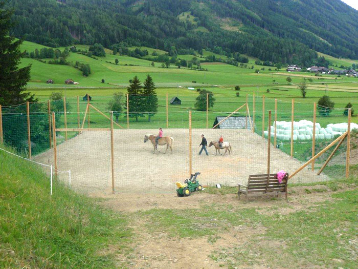 Unser "Multifunktionssportplatz" kann für Reitstunden und Hippotherpie und für Fuß- oder Volleyballspiele genutzt werden.